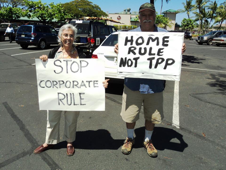 Many in Hawai`i were awakened to the types of dangers TPP could bring after the world’s largest chemical corporations pushed preemption bills in the Hawaii state legislature, taking away Hawai`i County’s right to “home rule” in regulating genetically modified crops and associated experimental pesticide use.